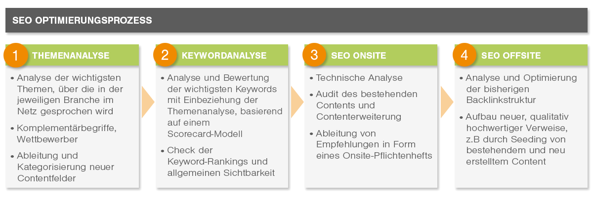- Optimieren Sie die „Low Hanging Fruits“ (gut rankende vorhandene Seiten optimieren).